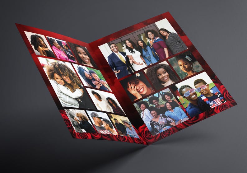 8.5x 11 Red Roses Funeral Program 8 Pages Celebration of Life Obituary