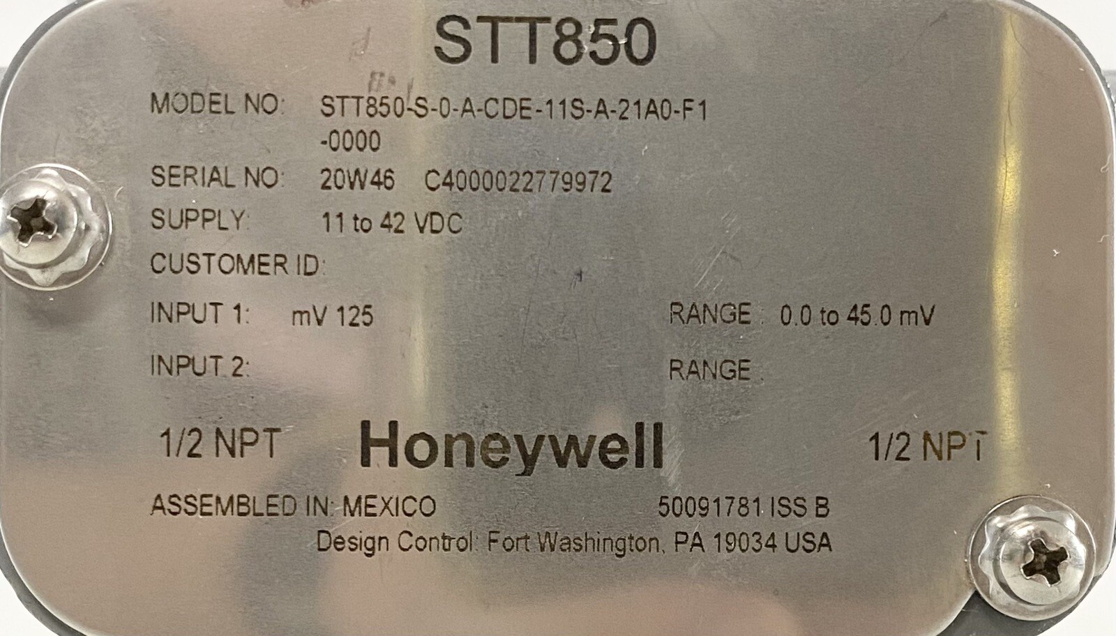 Honeywell STT850S0ACHE11SA30A0000000 Temperature Transmitter