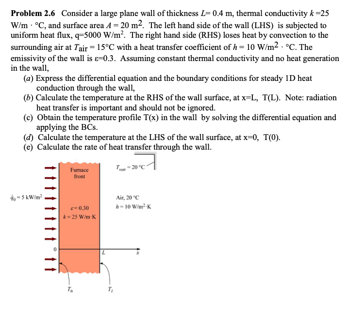 Solved Question 2 Consider a plane wall with a thickness L 4 A Plane Wall Of Thickness 0 6 M A plane wall of thickness 0.6 m(l=0.3 m) is made of steel (k=30 w/m.k,ρ=7900 kg/m3,c=640 j/kg⋅k). A plane wall of thickness 0.6 m (l = 0.3 m) is made of steel (k = 30 w/m.k, ρ = 7900 kg/m3, c = 640 j/kg.k). It is initially at a uniform temperature and is then. It is initially at a. A plane. A Plane Wall Of Thickness 0 6 M.