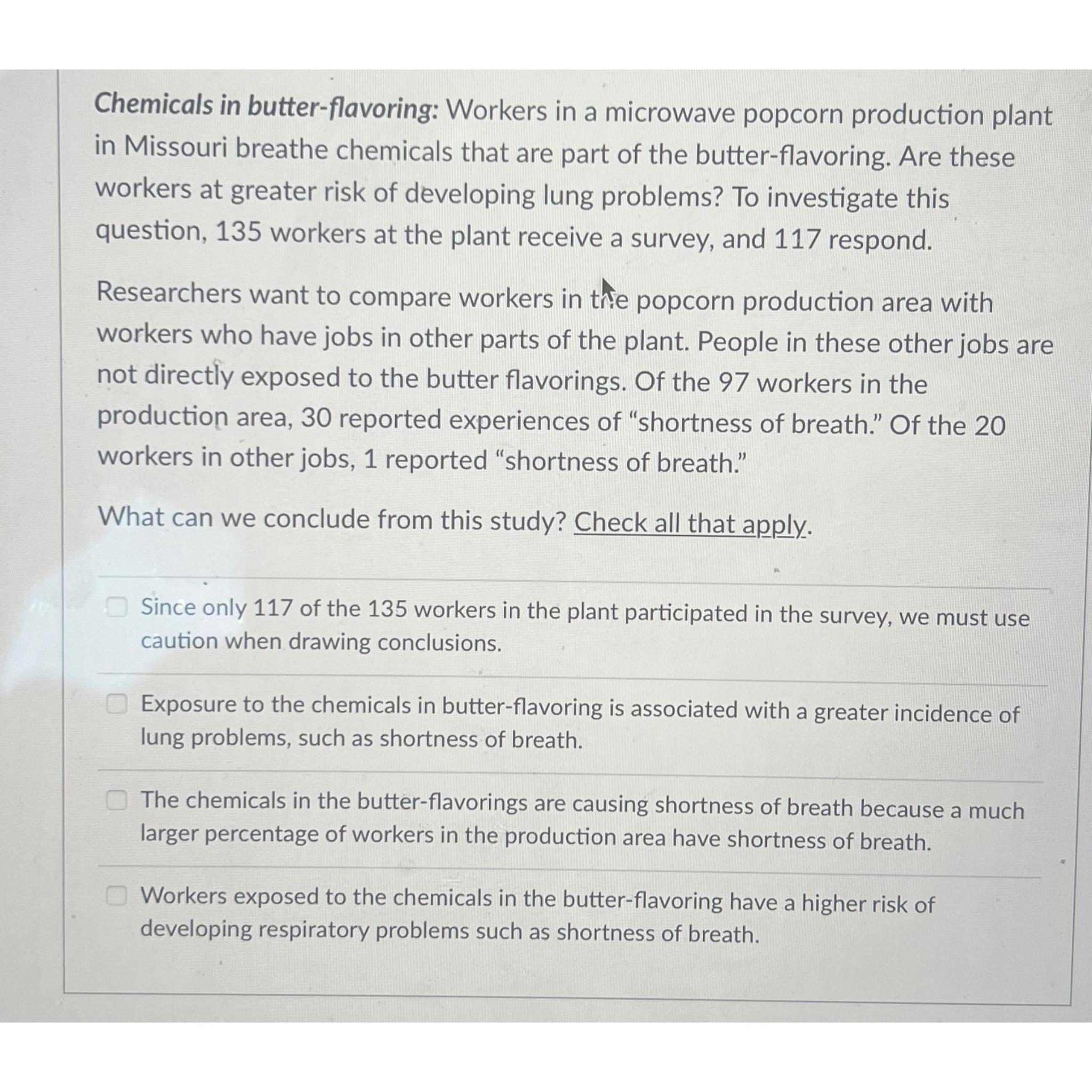Solved Chemicals in butterflavoring Workers in a microwave