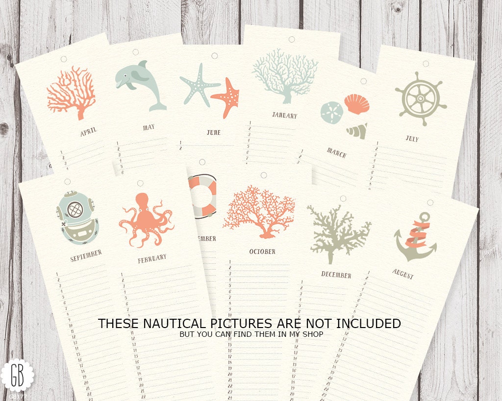 Perpetual Calendar DIY Wall Calendar Clip Art Monthly Etsy