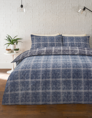 Navy Check Reversible Duvet Cover Set Home at ASDA