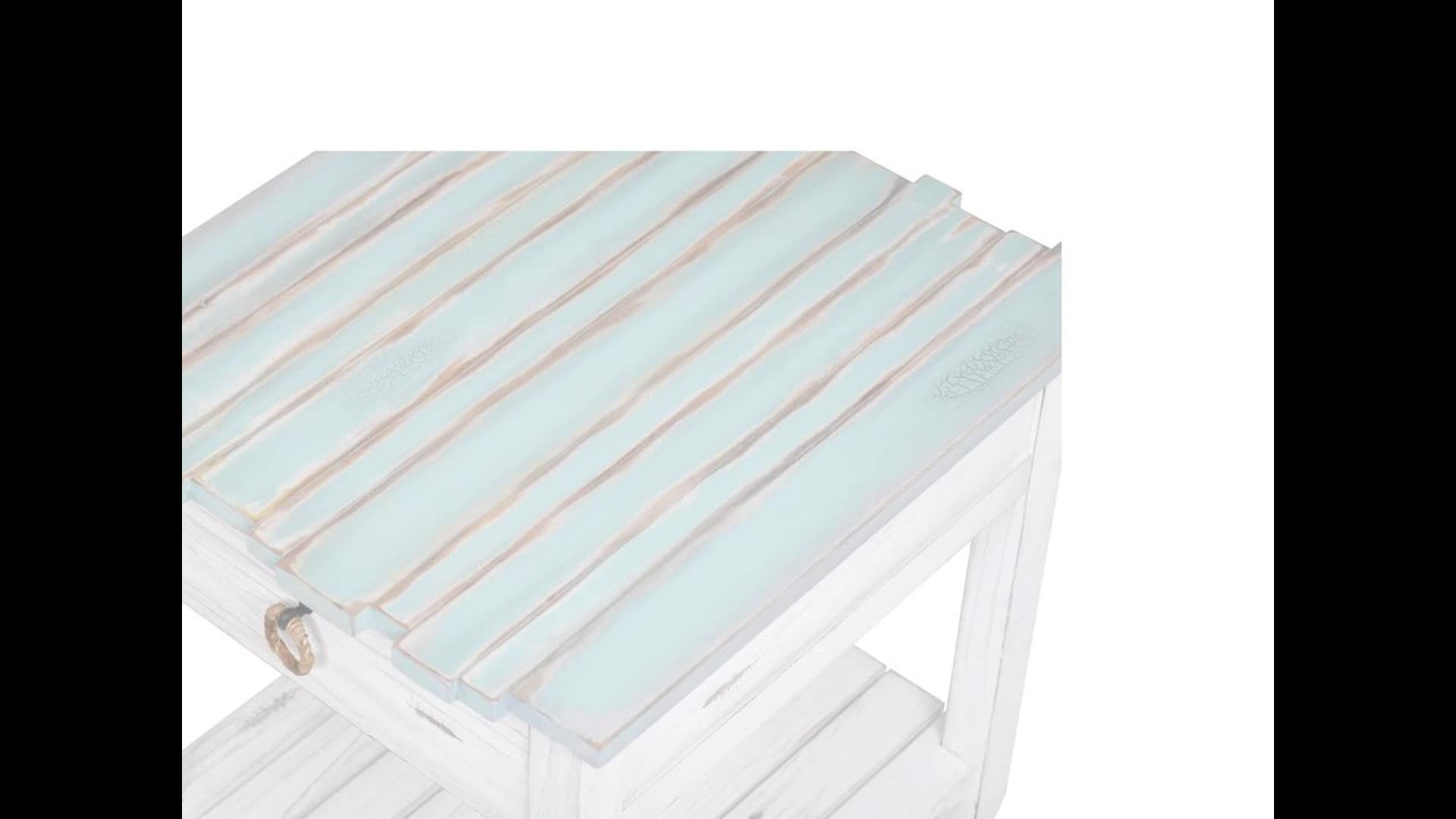 Picket Fence End Table, Distressed Blue/White Side Tables And End