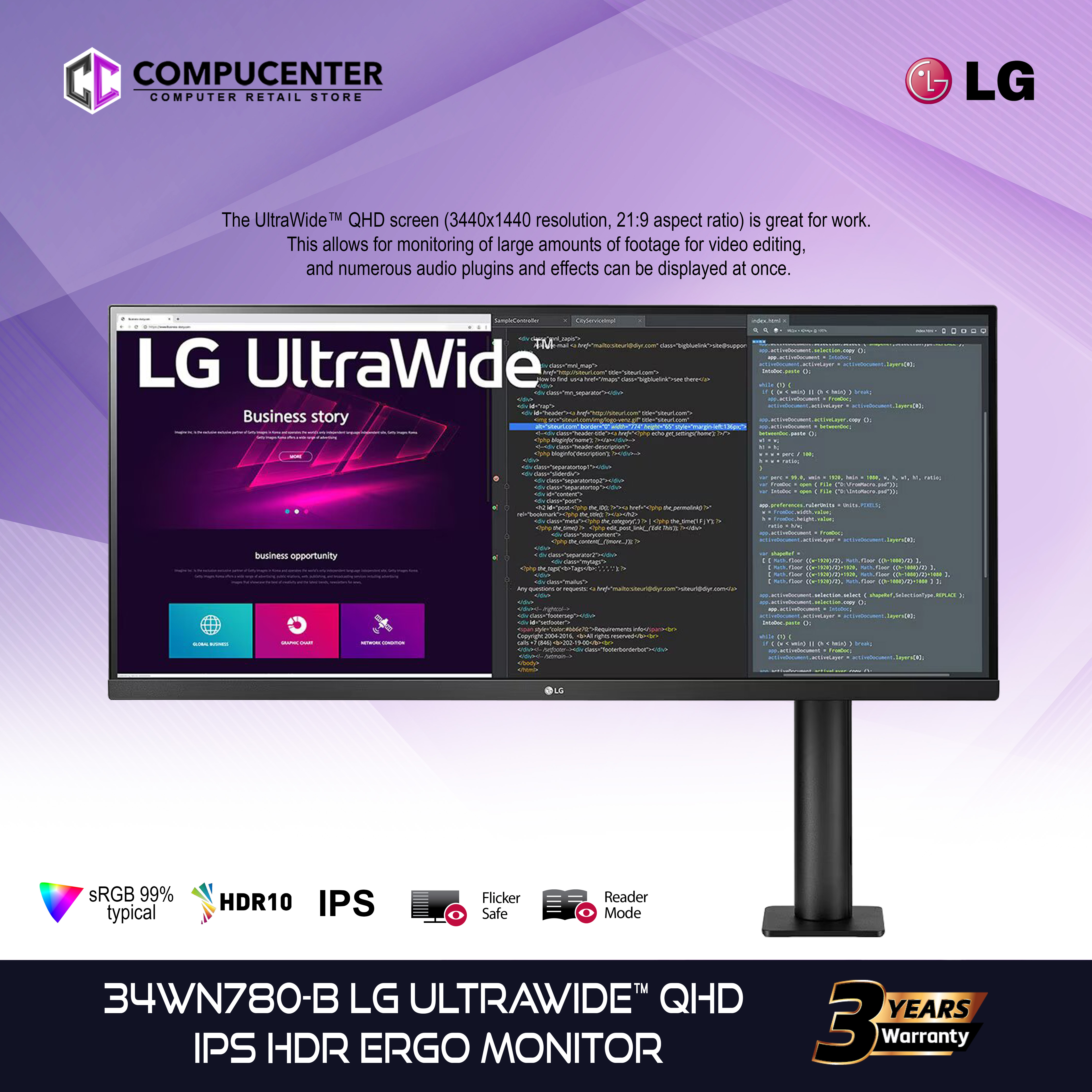 34" Curved UltraWide™ QHD IPS HDR 10 Monitor 34WQ73AB Ultrawide Monitor Ergonomics To decrease the distance to the edges of the screen, making it easier. i have a 34 inch ultra wide stacked on top of a 24inch 1440p monitor, and that works very very well. the curvature on an ultrawide monitor is supposed to have a practical purpose: actually, the rule of thumb is to align your eyes. Ultrawide Monitor Ergonomics.