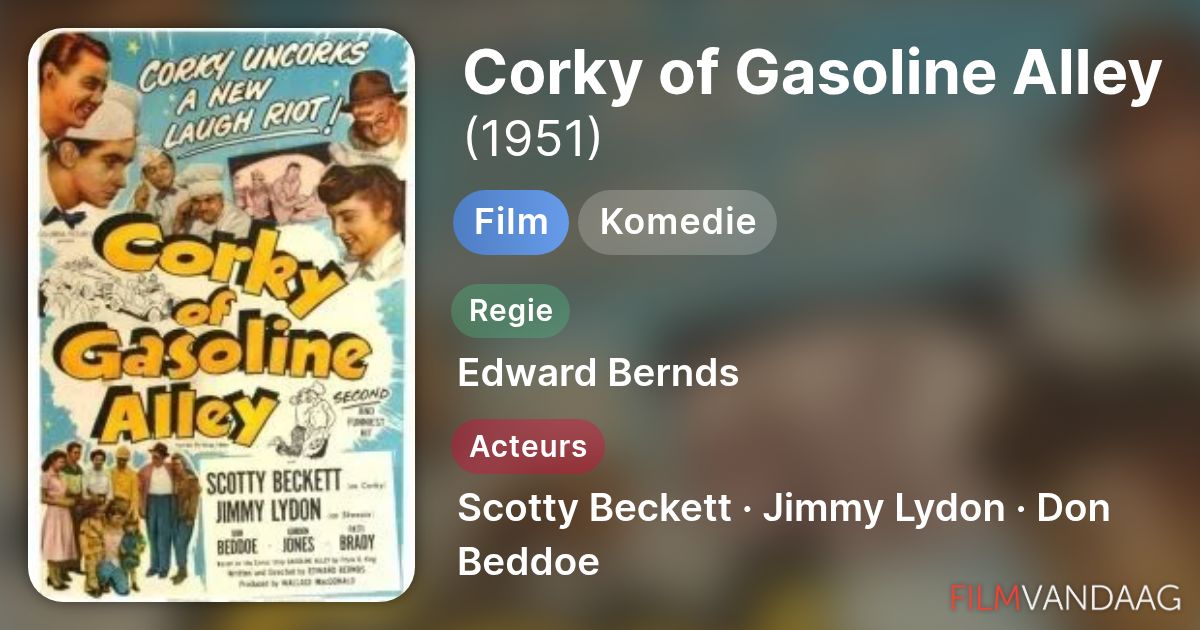 CORKY OF GASOLINE ALLEY, back to front Don Beddoe, Scotty Beckett Corky Of Gasoline Alley corky of gasoline alley: King comic strip characters go from newspaper page to screen in this 1951 feature film from legendary comedy. elwood martin (gordon jones), a brash extrovert with an aversion to work come to live with walt wallet (don beddoe) and his. when the car races by gasoline alley, elwood manages to grab chipper through. Corky Of Gasoline Alley.