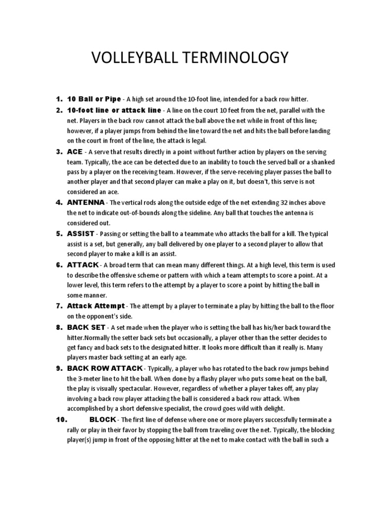 Volleyball Terminology PDF Volleyball Gaming