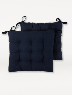 Navy Seat Cushion Pad Set of 2 Home at ASDA
