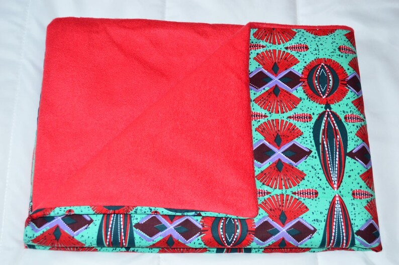 African Baby Blanket, Handmade African Baby Blanket, Red Fleece Baby