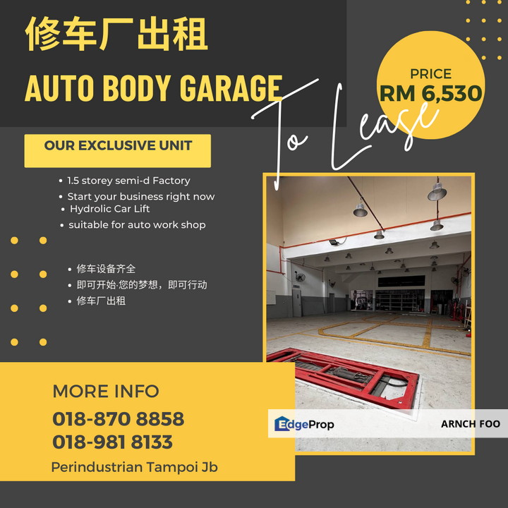 Taman Perindustrian Tampoi auto body shop for rent for Rental RM6,530