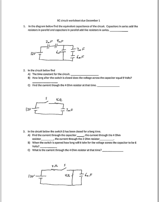 Solved RC Circuit Worksheet Due December 1 1. In The Diag... Capacitors In Series Worksheet Measure and record their individual. Determine how the two capacitors should. Write down the formula for the total capacitance of the. Equivalent capacitance worksheet three capacitors 12 µf, 6µf, and 4µf are connected in series with an 8 v battery. Your task is to arrange the two capacitors in a circuit to obtain an equivalent capacitance of 24 nf. In. Capacitors In Series Worksheet.