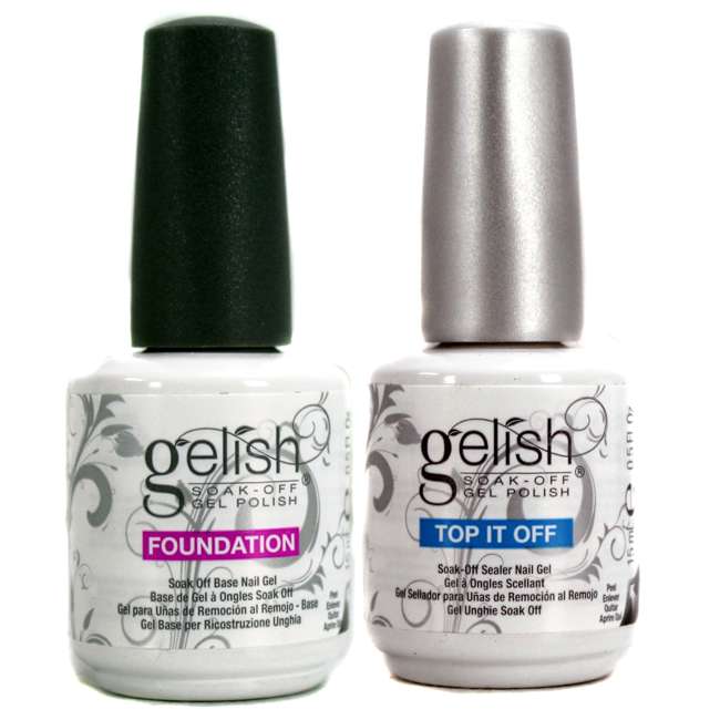 Gelish Gel Polish Top And Base Coat . Apply a thin coat of gelish no cleanse top coat to finish an enhancement and seal the free edge for lasting wear. Cure for 30 seconds in the 18g led light or 2 minutes in uv light. The gelish, gel nail polish dynamic duo package includes a gelish foundation gel 15 ml bottle and a top it off 15 ml. In my opinion, a good base and top coat is infinitely more important than the quality of the polish itself and gelish makes the best in my. By following proper application techniques, you can enjoy.