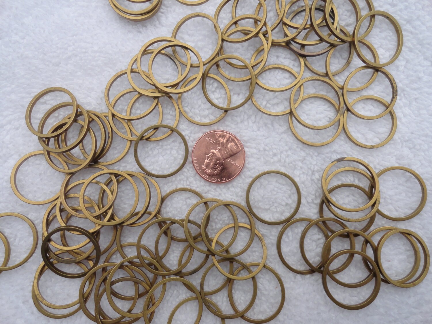 50 Brass Hoops/Loops, 19mm Round Connectors, Varying Patina from
