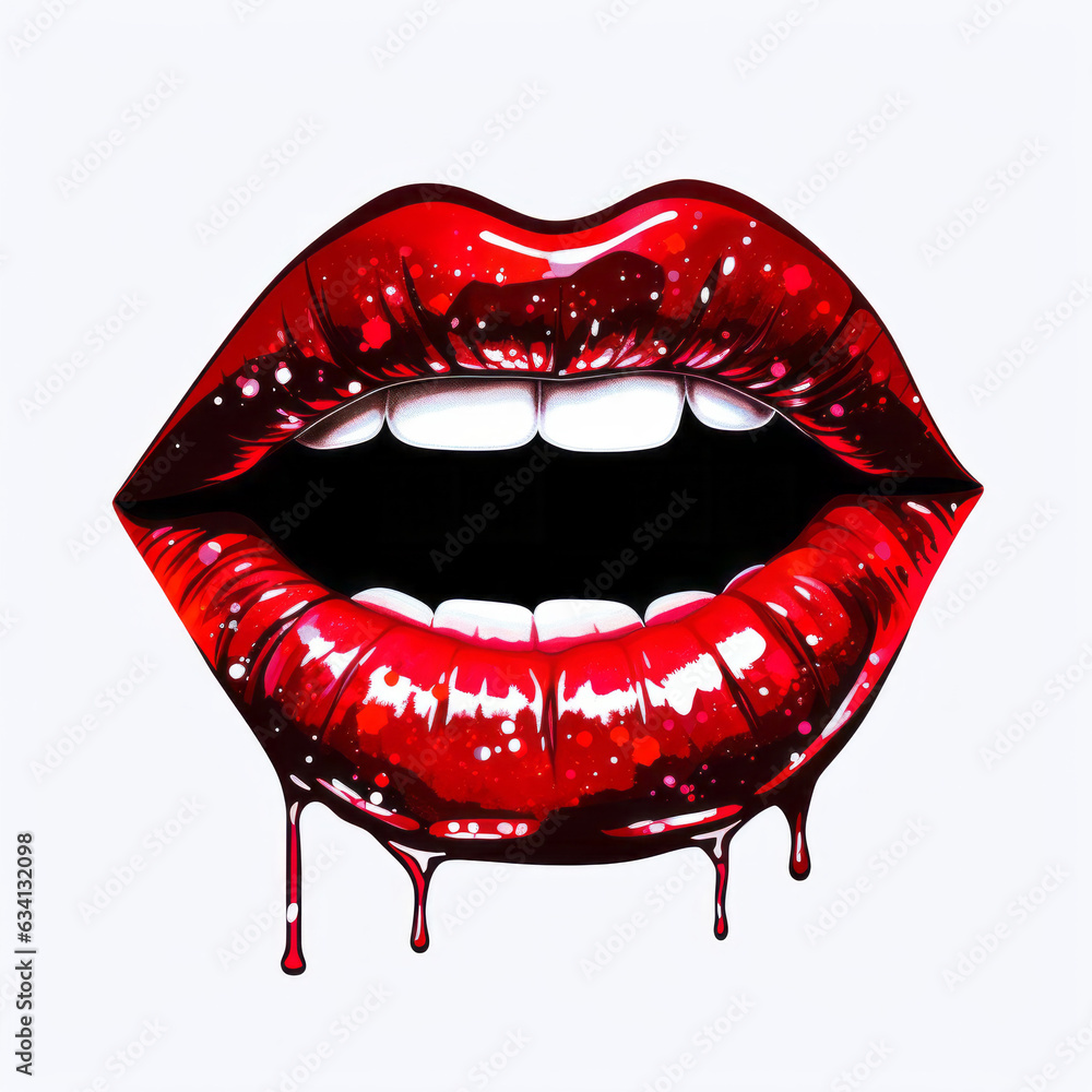 Bloody lips with dripping blood, creating a haunting and captivating