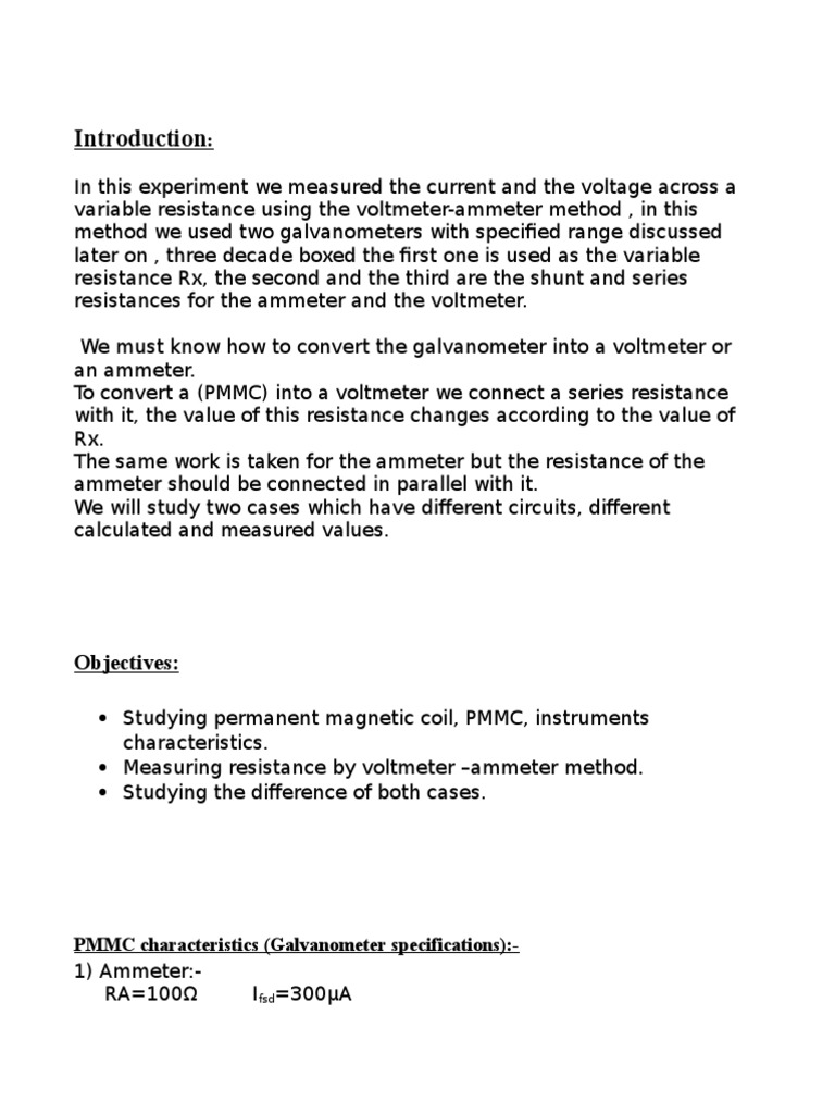 Method for Measurement of Resistance AmmeterVoltmeter Method Voltmeter-Ammeter Method The different methods used for medium. It is a very common, simple and quick method of measuring the low value resistances. This resistance measurement method is very popular since the instruments required for this. As the name of the method suggests,. In this section, we will discuss the method of measurement of medium resistance. The ammeter/voltmeter approach and the megohmmeter.. Voltmeter-Ammeter Method.