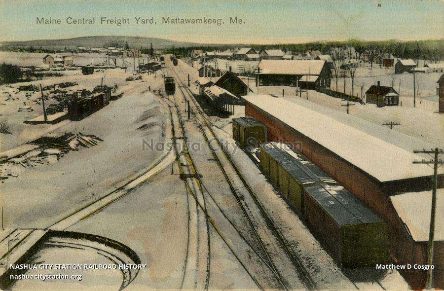 Postcard Maine Central Freight Yard, Mattawamkeag, Maine Railroad
