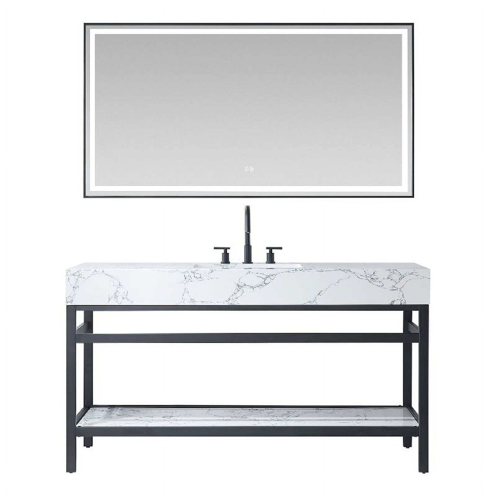 Ecija 60" Matte Black Metal Vanity with Pandora White Composite Top and