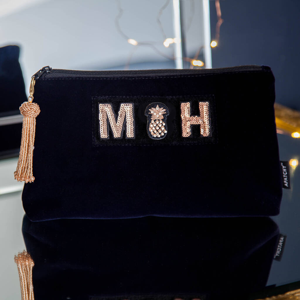 personalised velvet toiletry bag by apatchy