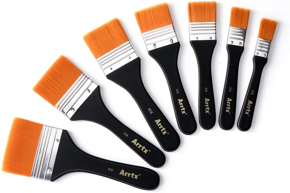 Lightwish Set of 7 Flat Paint Brushes for Acrylic,Applying Gesso, Oil