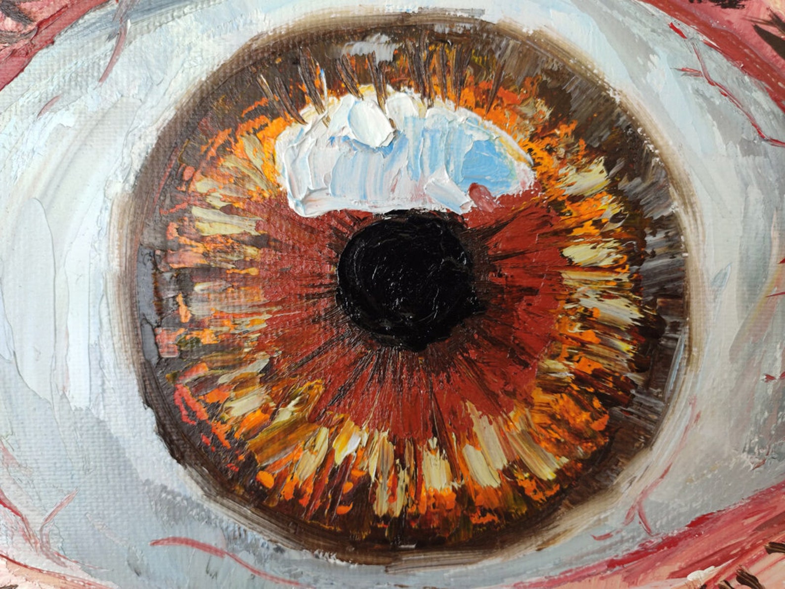 Brown Eye Original Oil Painting Impasto Wall Art Portrait Eye Etsy Oil Paint In Eye Study several eyes before you begin to paint. To paint a realistic eye, you will need to make the pupil perfectly round, even though the top of it will be partially covered by the eyelid. Whether you’re a beginner or an experienced artist, these tips will help you. In this tutorial, we’ll show you how to create beautiful oil paintings. Oil Paint In Eye.