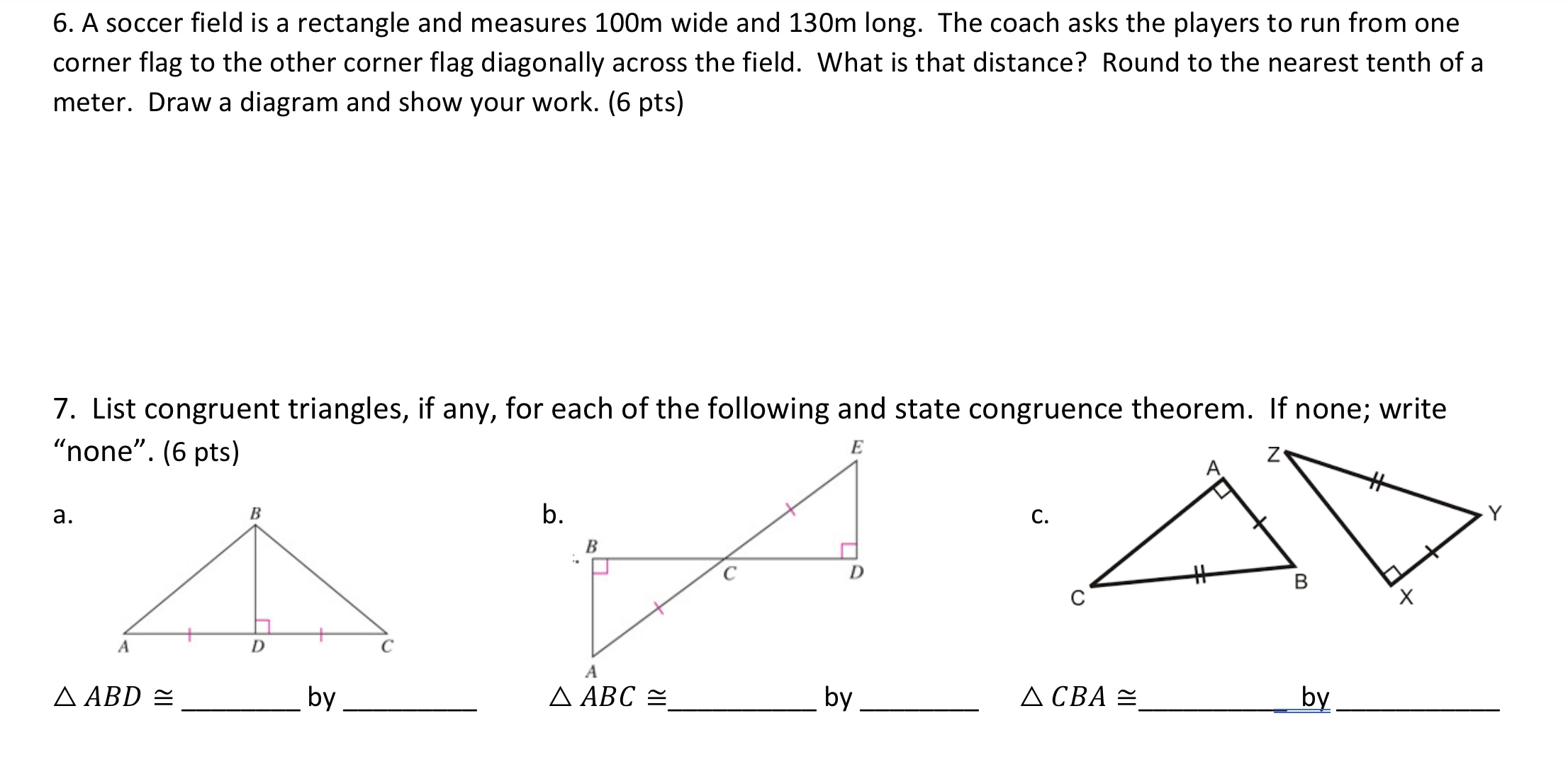 Solved 6. A soccer field is a rectangle and measures 100 m