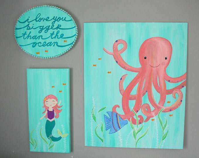 Ocean Theme NURSERY ART Mermaid Octopus Fish Girls Room Decor Etsy