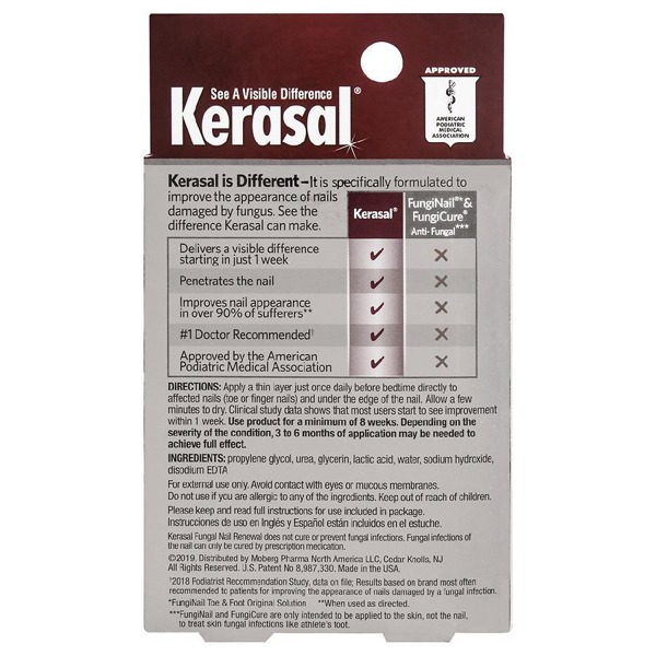 Kerasal Nail Renewal, Restores Appearance of Discolored or Damaged Nails, 0.33 fl oz Kerasal Nail Instructions Remove any nail polish before use. Apply a thin layer 2. Wash nails and surrounding skin and dry thoroughly as oils and moisture reduce adhesion. Improves the appearance of fingernails or toenails damaged by any of the following four issues:. This nail repair uses a. This nail repair patch reduces both discoloration and thickness, smoothes the nail's surface, and hydrates. Kerasal Nail Instructions.