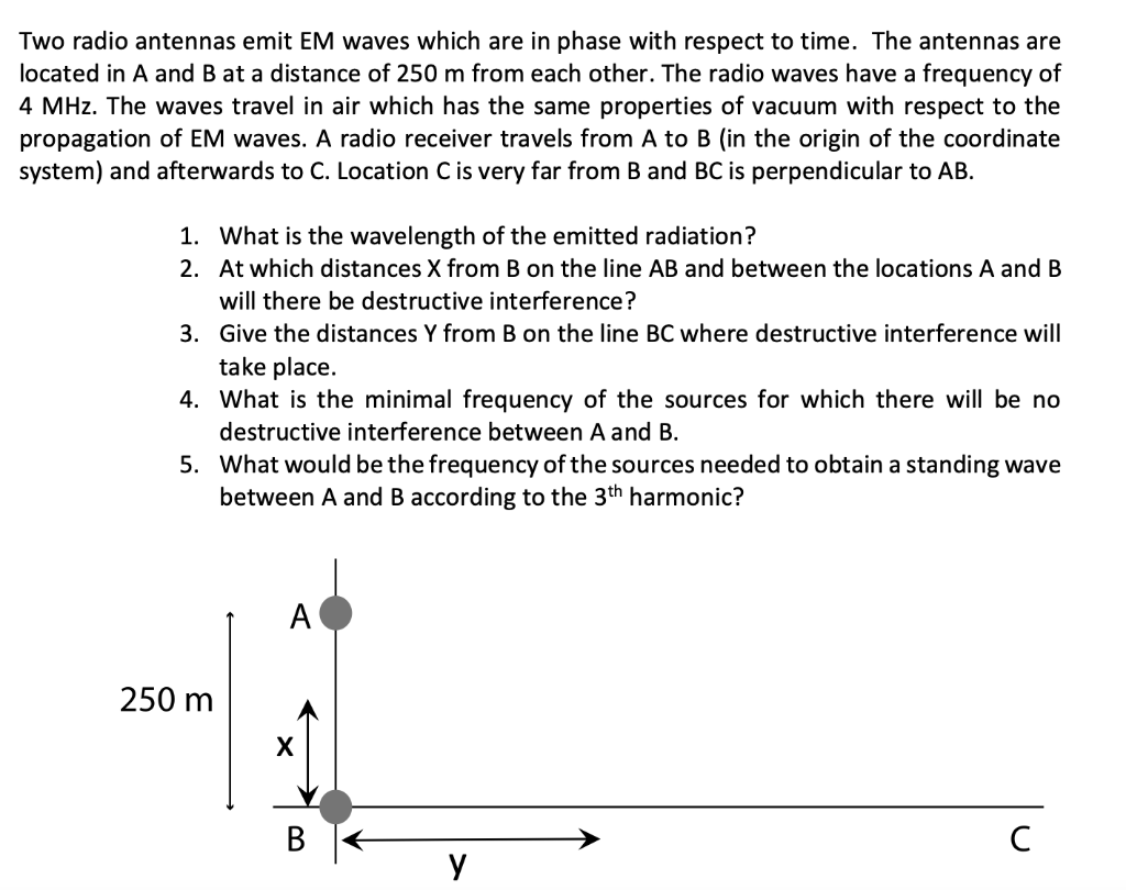 Solved Two radio antennas radiating in phase arc located at Two Out-Of-Phase Radio Antennas At X= Is the point (x, y) = (300 m, 800 m) a. Is the point (x, y) = (400 m, 1000. Use this interactive phet simulation to explore superposition, and find locations of completely constructive interference and completely destructive interference for. Is the point p (x, y) = (250 m, 375 m) a. If d = λ/2 and the two antennas. Two Out-Of-Phase Radio Antennas At X=.