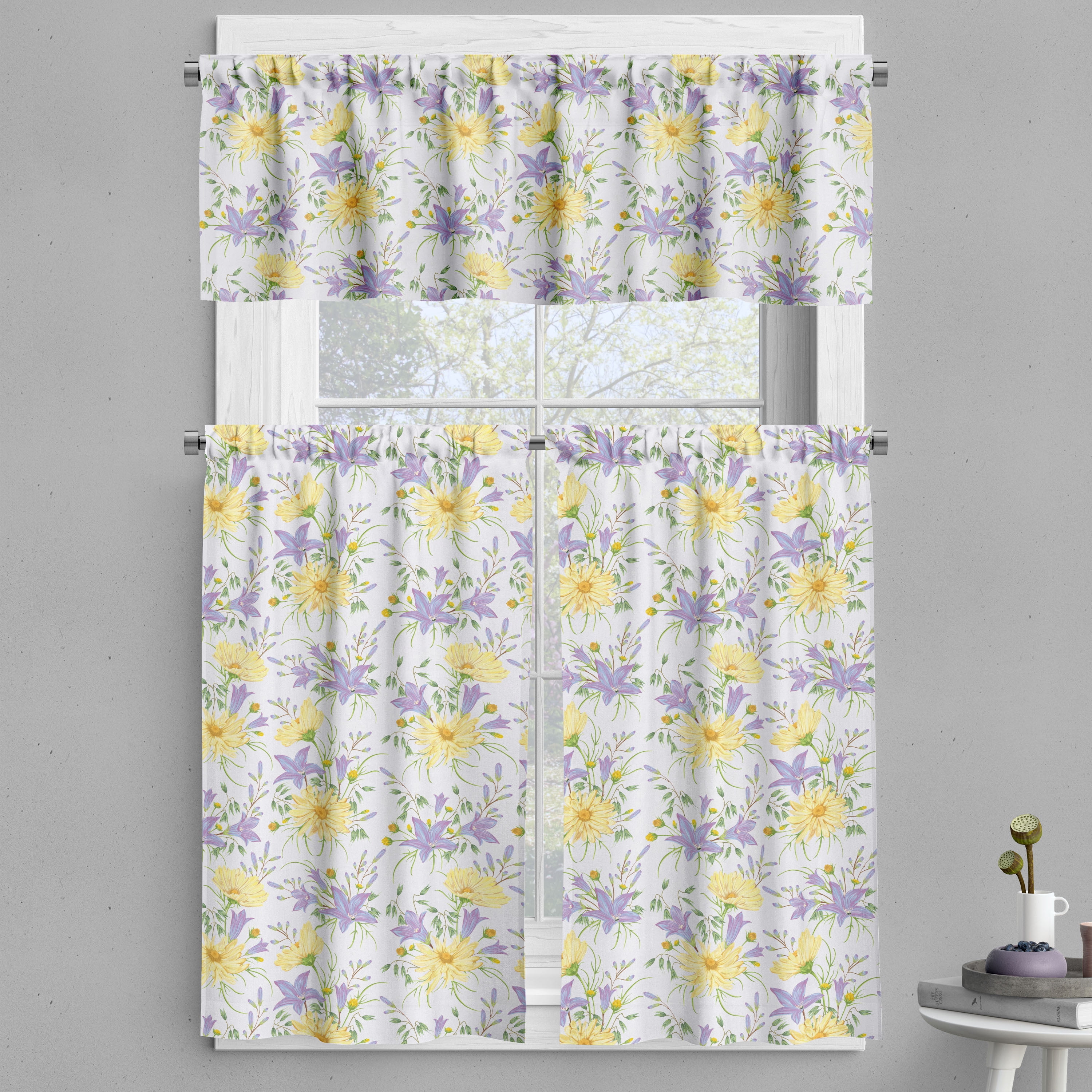 Ambesonne Floral Valance & Curtain, Chamomiles and Bluebells, 55"x24