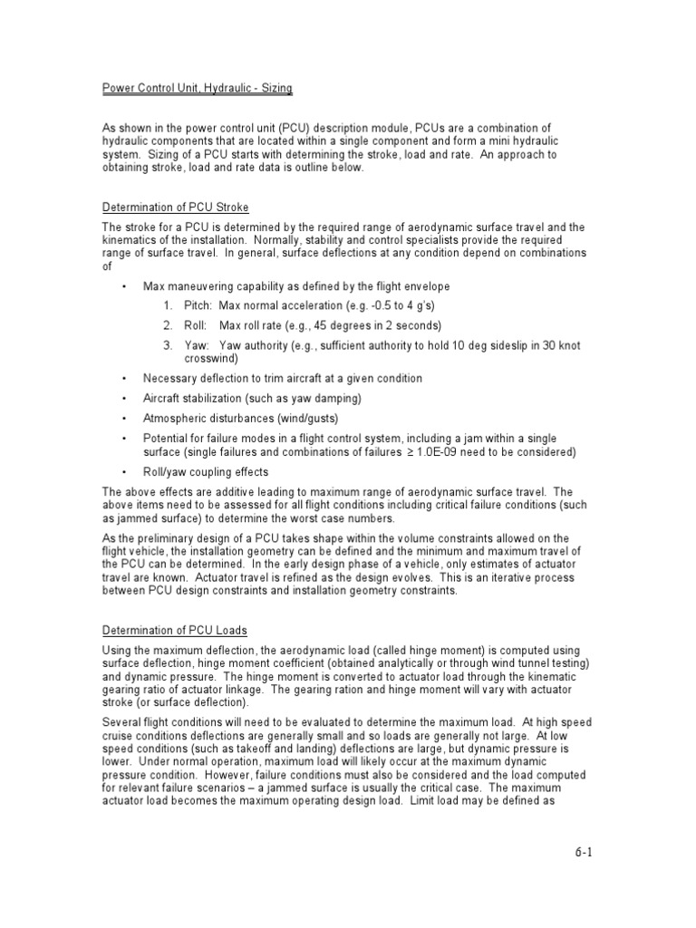 Power Control Unit, Hydraulic Sizing PDF Flight Dynamics (Fixed