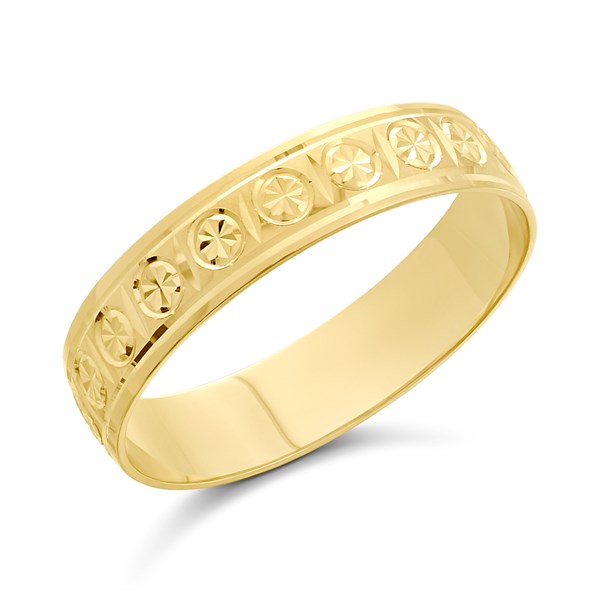 9ct Gold Diamond Cut Wedding Ring 4mm R1612 F.Hinds Jewellers