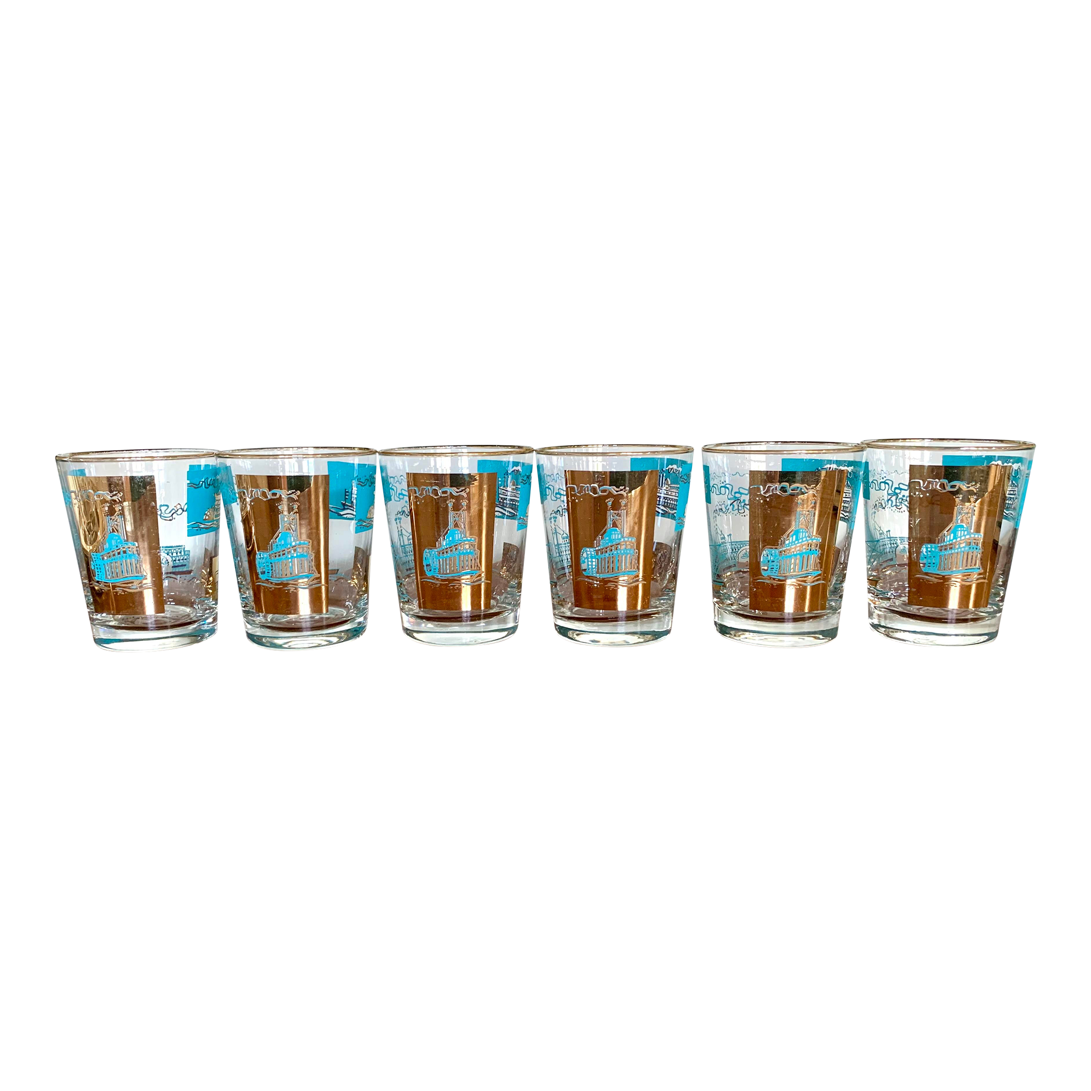 Mid 19th Century Libbey Steamboat Double Old Fashioned Glasses Set of