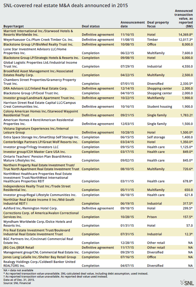 Volume of real estate M&A deals sets record in 2015 S&P Global Market
