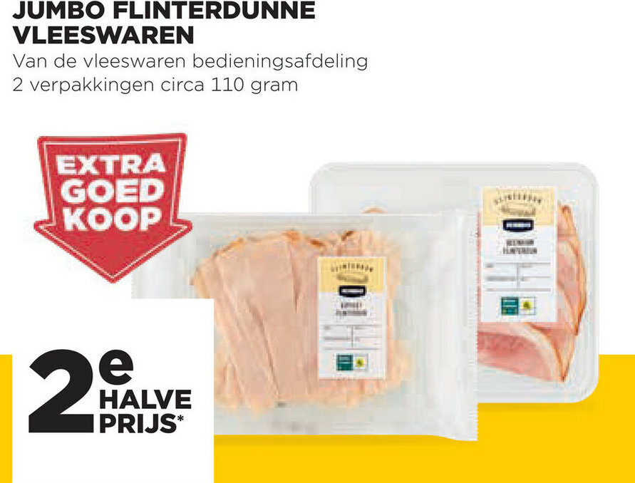 Jumbo Flinterdunne vleeswaren 2*110g aanbieding bij Jumbo