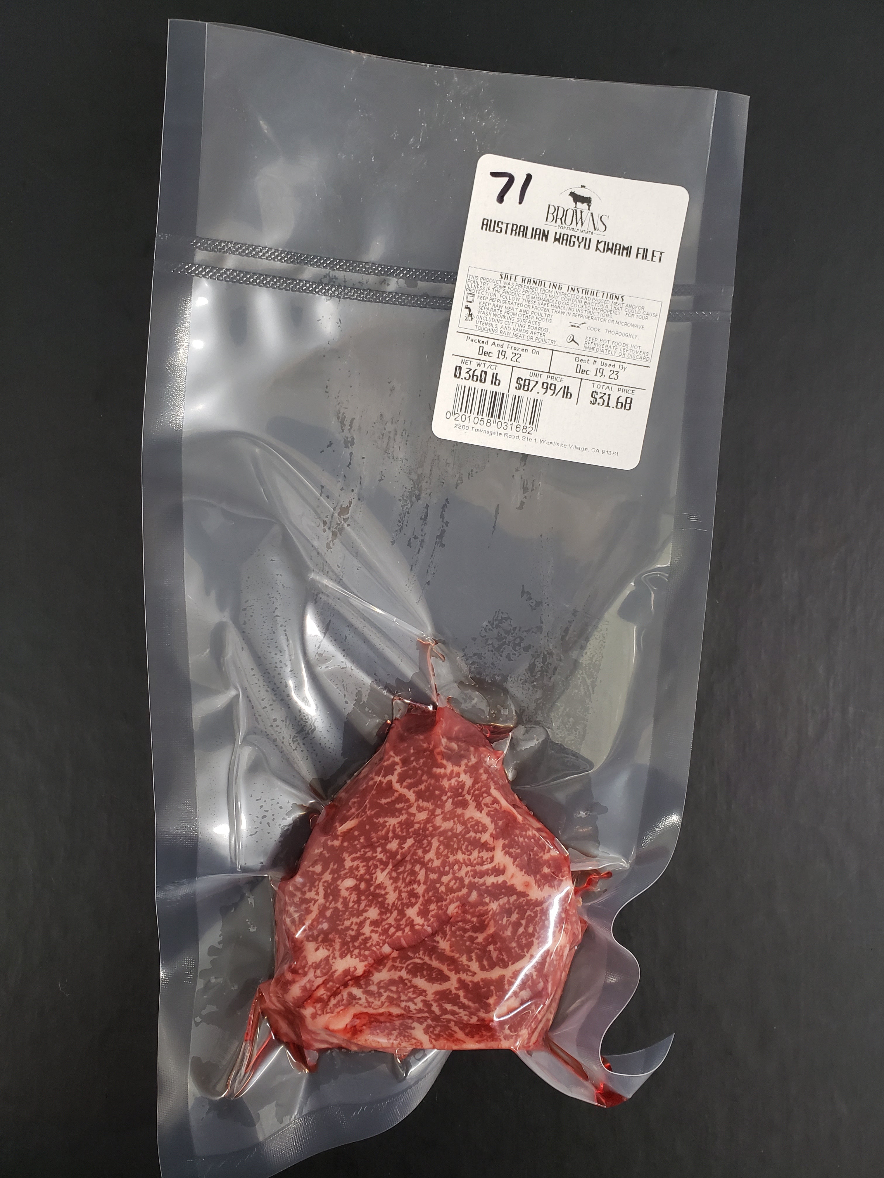 KIWAMI WAGYU FILET 71 Brown's Top Shelf Meats