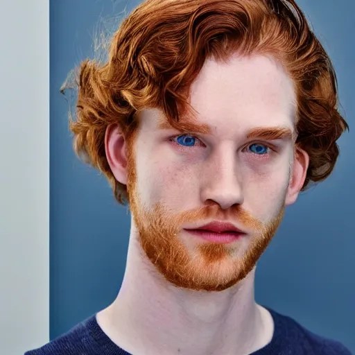 handsome, very pale, ginger man with wavy hair, blue Stable Diffusion