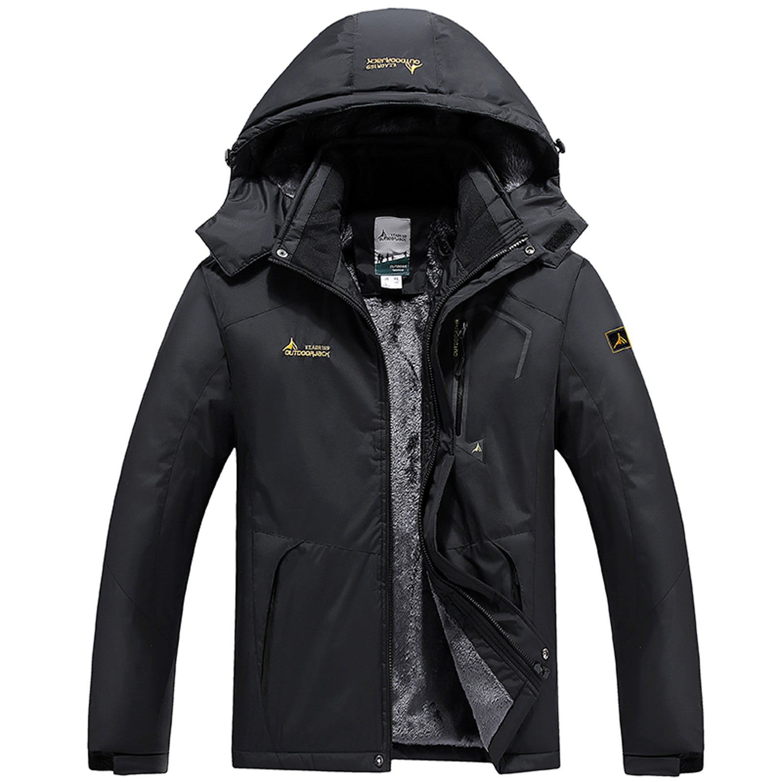 Fleece Puffer Jacket Black Man's Warm Waterproof Windbreaker Hooded Raincoat Snowboarding