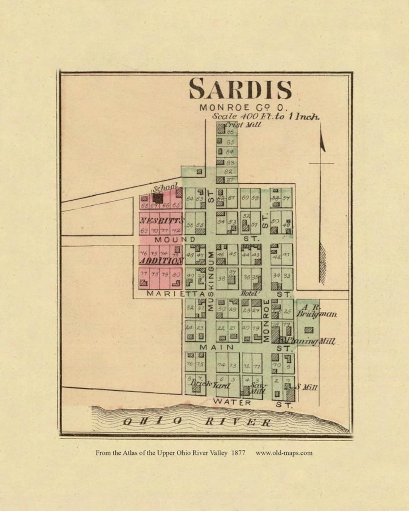 Sardis 1877 Old Town Map Monroe County Ohio Valley Atlas Etsy