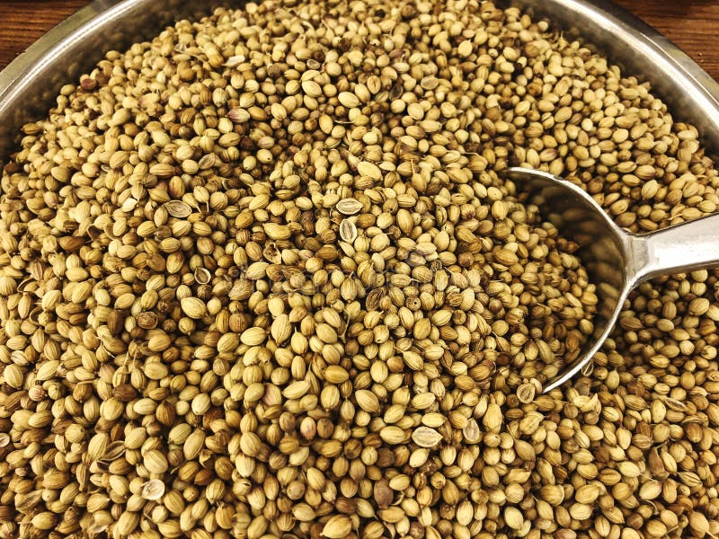 Coriander Seeds with Metallic Scoop Close Up Stock Image Image of