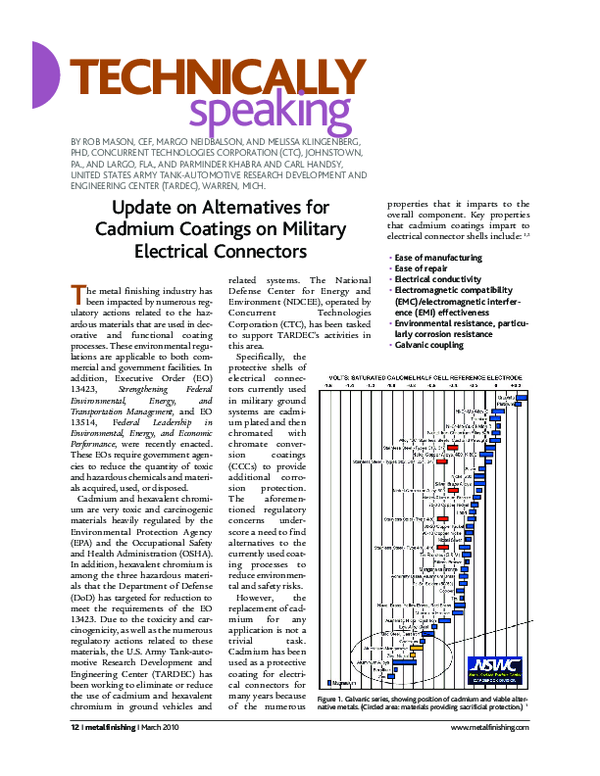 (PDF) Update on alternatives for cadmium coatings on military
