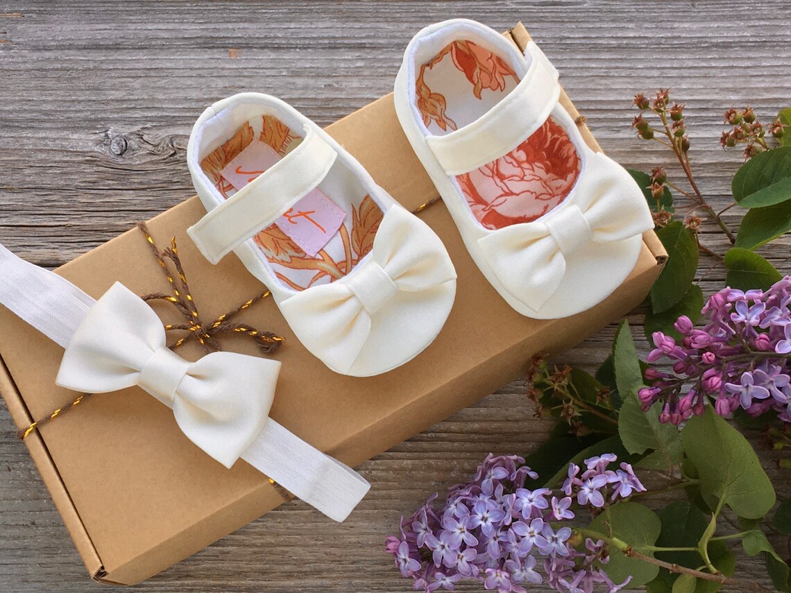 White flower girl shoes white christening shoes bow shoes Etsy