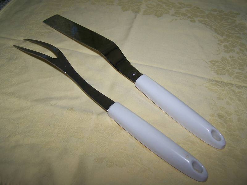 Vintage Ekco Spatula & 2 Prong Fork with Mod Handles Spoons, Forks