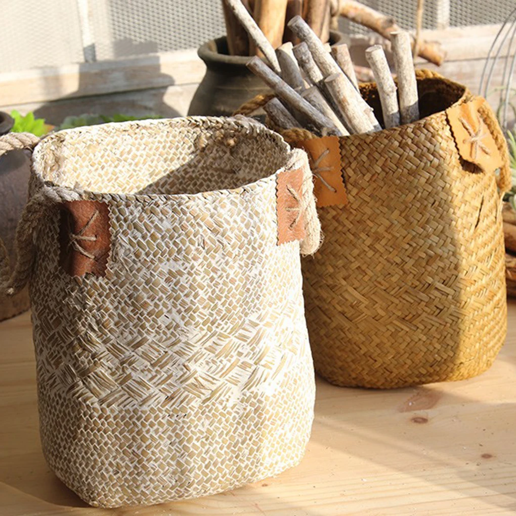 Multifunction Handmade Seagrass Braided Basket Flower Pot Desktop