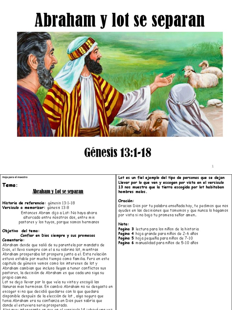 019 Génesis 13.1 18 Abraham y Lot Se Separan PDF Abrahán Abram Y Lot Se Separan Explicacion Abram rescató a lot y a su familia del. Cuando llegaron a betel, los pastores de ovejas de abraham y lot se pelearon porque no había suficiente tierra para sostener la cantidad de ganado que cada uno de ellos poseía. Abram y lot se separaron y la familia de lot fue capturada por un ejército invasor mientras vivía en sodoma.. Abram Y Lot Se Separan Explicacion.
