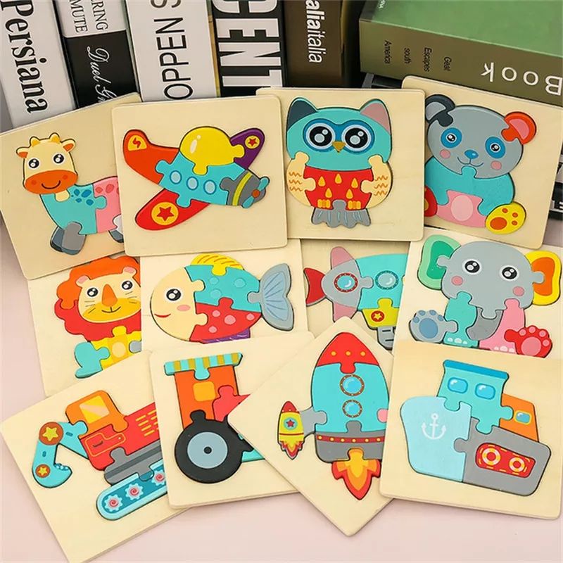 Colorful Wood 3d Puzzles Cartoon Animals Kids Cognitive Jigsaw Puzzle Wooden Baby Educational