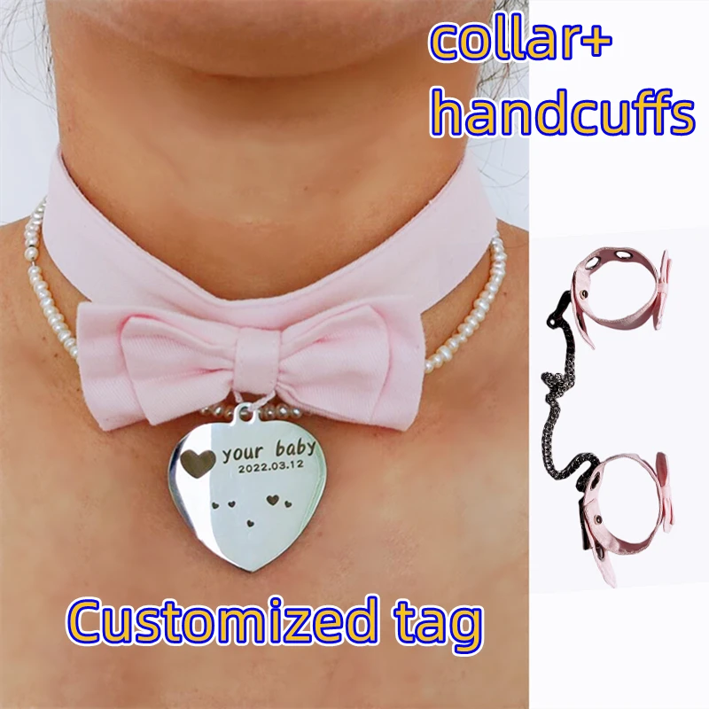DDLG/ABDL Collar Handcuffs Set Customized Dog Tag Bondage Handmade