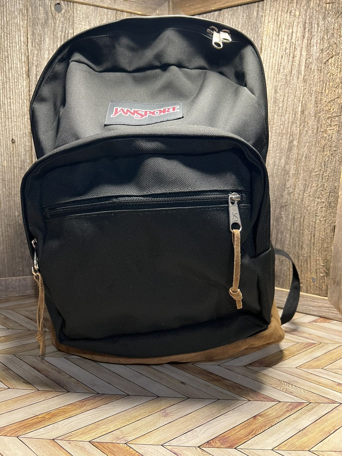 Vintage JanSport Originals Black Backpack Brown Suede Bottom TYP7 Grailed