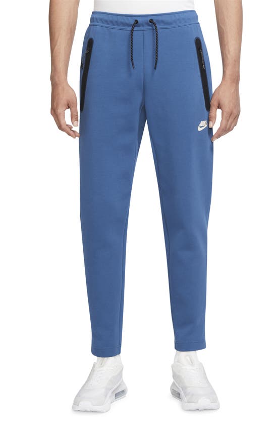 Nike Tech Fleece Cotton Blend Joggers In Dark Marina Blue/ Light Bone