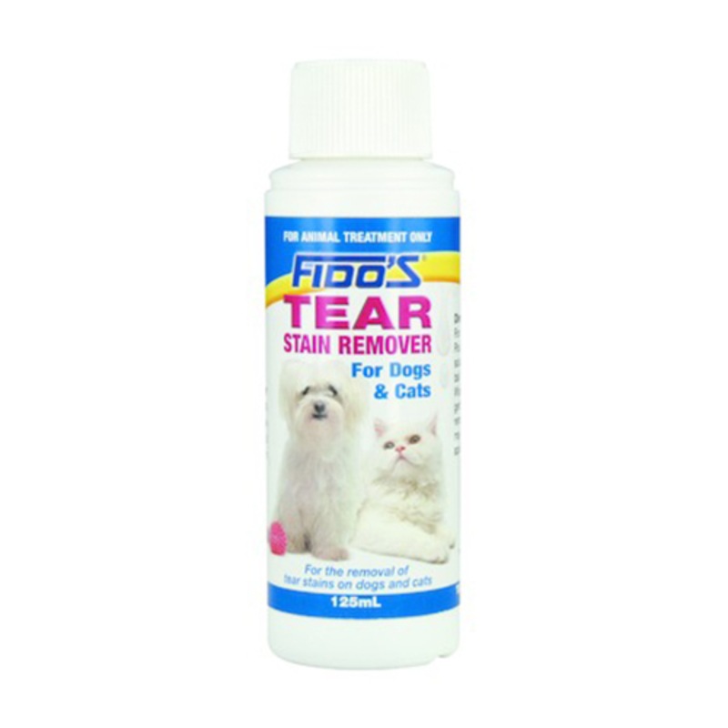 Fido's Tear Stain Remover 125ml Fido's Tear Stain Remover Ingredients Removes tear stains and saliva stains on cats. Safe to use around eyes and mouth and can also be used to clean around skin folds. Why to use fido's tear stain remover for cats & dogs. Fido's tear stain remover has been formulated to remove tear stains and saliva stains from the fur of all breeds of cats and dogs.. Fido's Tear Stain Remover Ingredients.