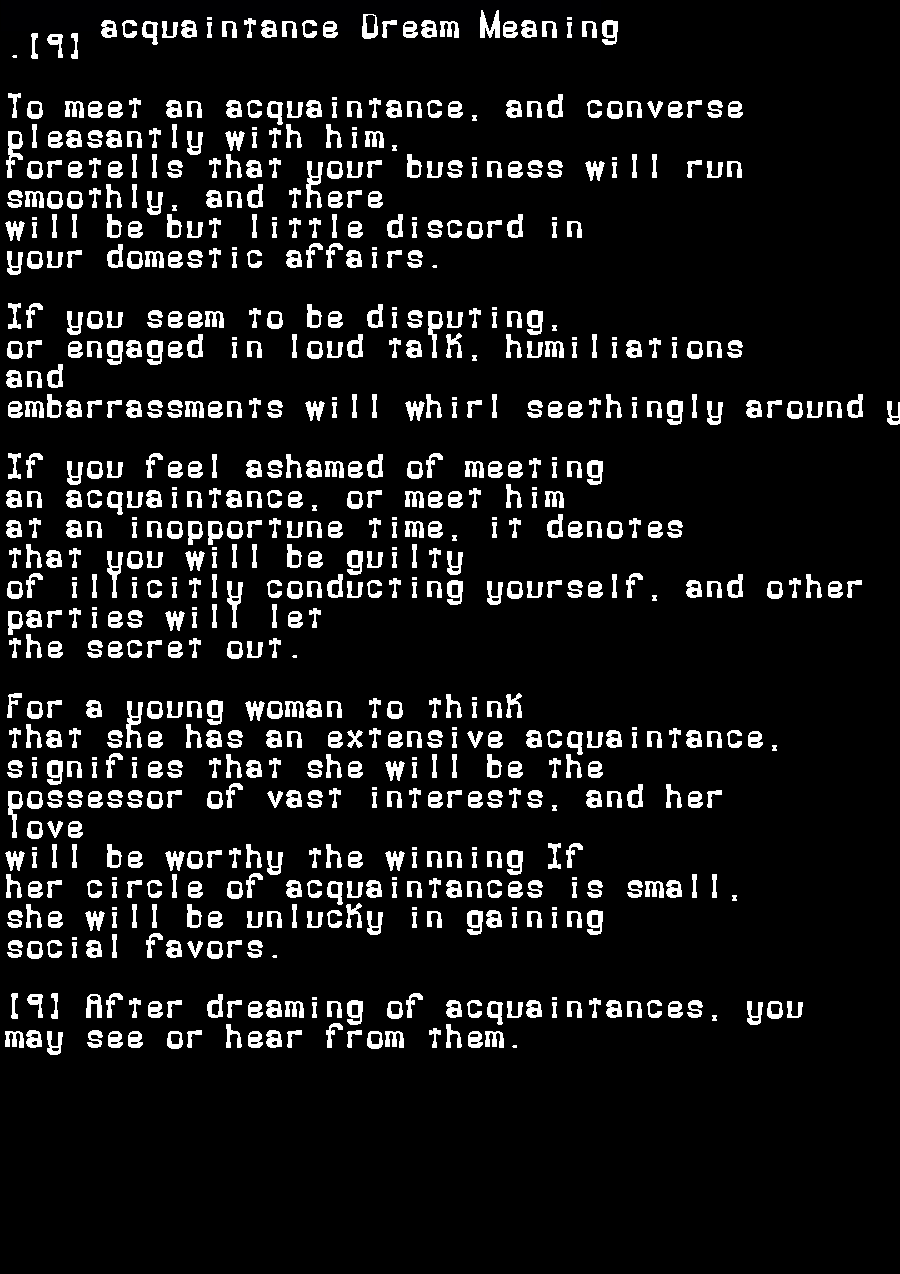 Acquaintance Dream Dictionary Interpret Now! E-Quaintance Dictionary (internet) a person known exclusively online, usually from instant messaging such as aim, or through. Which ironically don't allow for the depth of. The meaning of acquaintance is the state of being acquainted. How to use acquaintance in a sentence. Check out the pronunciation, synonyms and grammar. (internet) a person known exclusively online, usually from instant messaging such as aim,. E-Quaintance Dictionary.