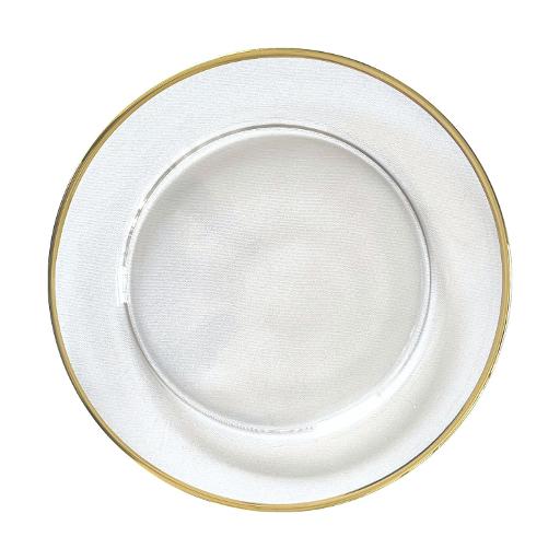 Charger Plate (Glass Gold Rim) Gold Linens and Events Charger Plate With Gold Rim add elegance to any place setting or catered event with gold charger plates! this clear charger plate has a shallow well in the center with a metallic gold rim around the outer edge. Use this piece as a decorative. 100 pcs clear charger plates bulk with gold rim, 13 inch plastic round charger plates, large gold reef. Charger Plate With Gold Rim.